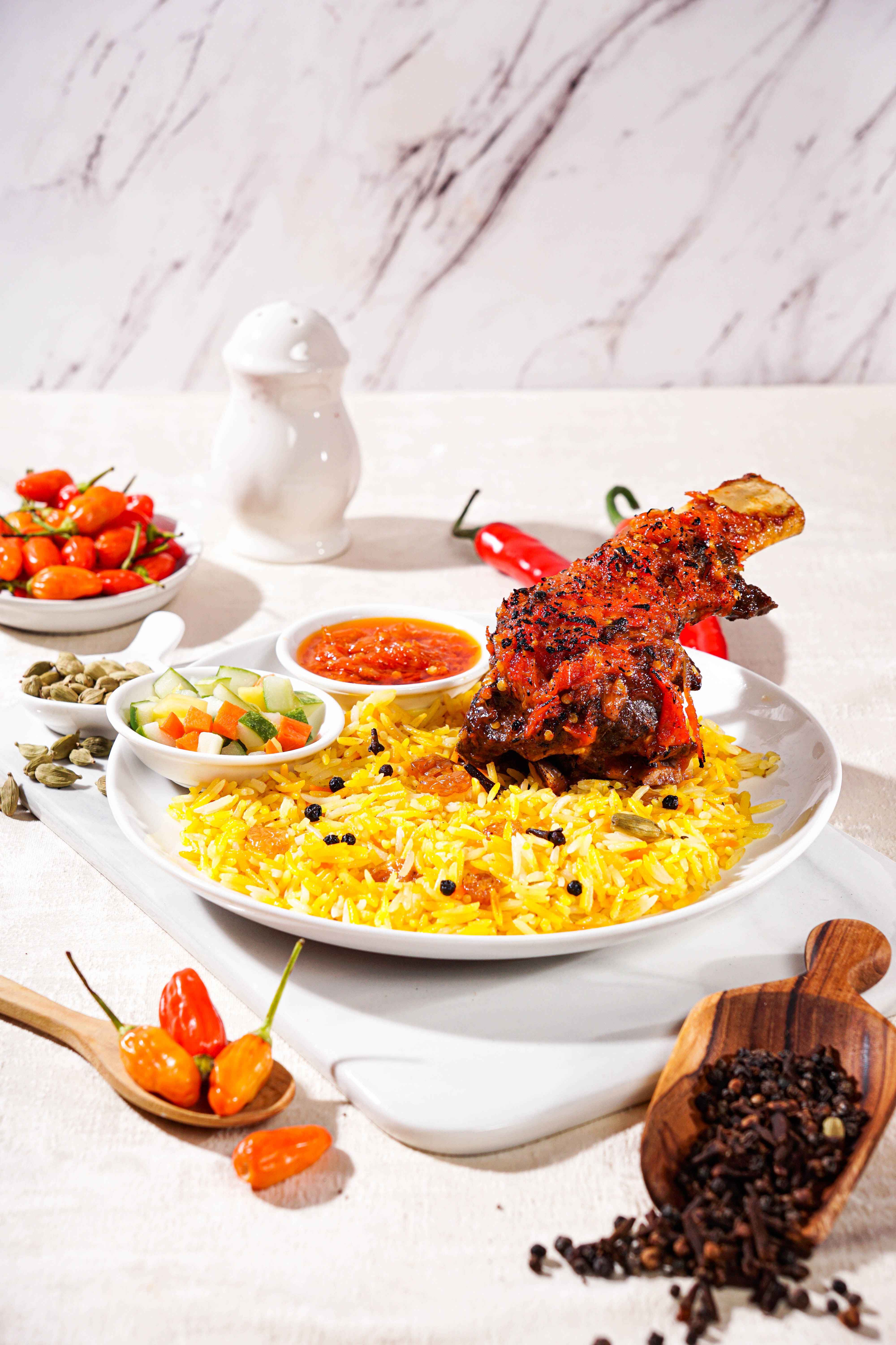 Nasi menggunakan Beras Basmati pilihan yang diolah dengan rempah-rempah pilihan. Dimasak dengan teknik khusus, memberikan cita rasa yang khas dan aroma yang menggugah selera.